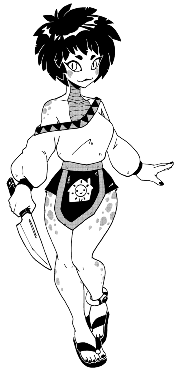 Innkeeper of “The Well Groomed Snake”. No one tries to cheat or steal around her turf and no one knows why.